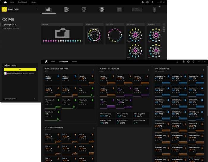 Gérez tous vos composants CORSAIR et votre matériel de jeu en un seul endroit. Consultez toutes les données des capteurs, les paramètres de profil et les options de réglage au sein d'une interface raffinée et intuitive.
