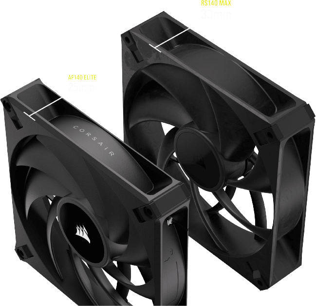 Tout ventilateur de 30 mm, tel que le RX MAX et le RS MAX, est 20 % plus épais que le ventilateur de refroidissement standard de 25 mm. Cela se traduit directement par une puissance de refroidissement supplémentaire pour votre PC, avec un flux d'air plus important et une pression statique générée par les pales de ventilateur plus grande.