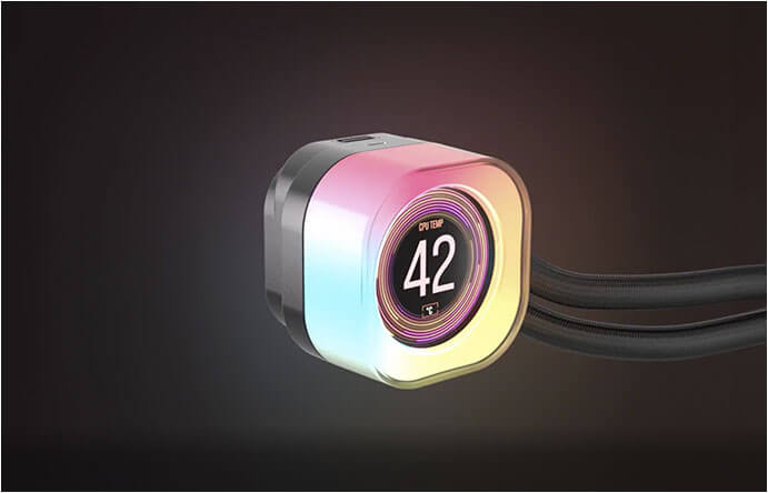 Un écran IPS LCD personnalisé de 2,1 pouces avec une résolution de 480x480 et un rétroéclairage ultra-brillant de 600cd/m² affiche la température du processeur en temps réel, votre GIF animé préféré, le meme le plus drôle ou le logo de votre équipe à 30 FPS dans plus de 16,7 millions de couleurs.