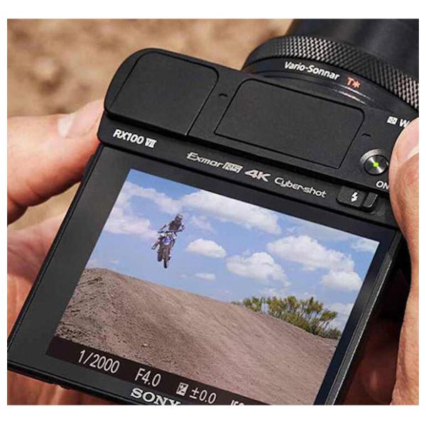 Pour cloturer le tout, le Sony DSC-RX100 VII offre un écran LCD inclinable pour une utilisation facilitée et idéale pour les vloggeurs par exemple. Il dispose également d'un déclencheur tactile, pour encore plus de confort. Ce compact dispose également d'un viseur électronique rétractable XGA OLED Tru-Finder de 2.35 millions de pixels.