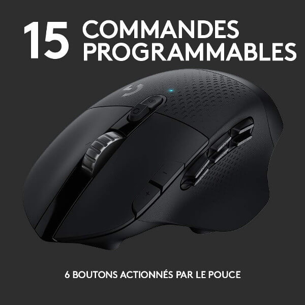 La souris G604 Lightspeed intègre le capteur optique Logitech HERO qui assure précision et justesse. La résolution est réglable à la volée via 5 paliers pour une sensibilité allant de 240 à 16 000 dpi. Eh oui, 16 000 dpi au sein d'un capteur optique ! Qui a dit que précision et rapidité n'allaient pas de pair ? Avec son accélération maximale à 40 G et son taux de rapports USB à 1000 Hz, soit 1 ms seulement, décrocher la victoire n'est plus qu'une formalité... usez (et abusez) de votre avantage pour triompher.