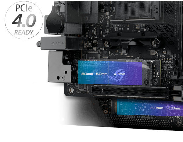 Avec la demande constante d'augmentation des performances par les jeux et les applications, les équipements d'aujourd'hui doivent être en mesure de répondre à ces besoins de bande passante. Avec le chipset B550 pour socket AM4, la carte mère STRIX B550-I GAMING est en mesure de prendre en charge le PCIe 4.0 offrant le double de performance par rapport au PCI-Express 3.0 (32 GB/s sur une ligne x16).