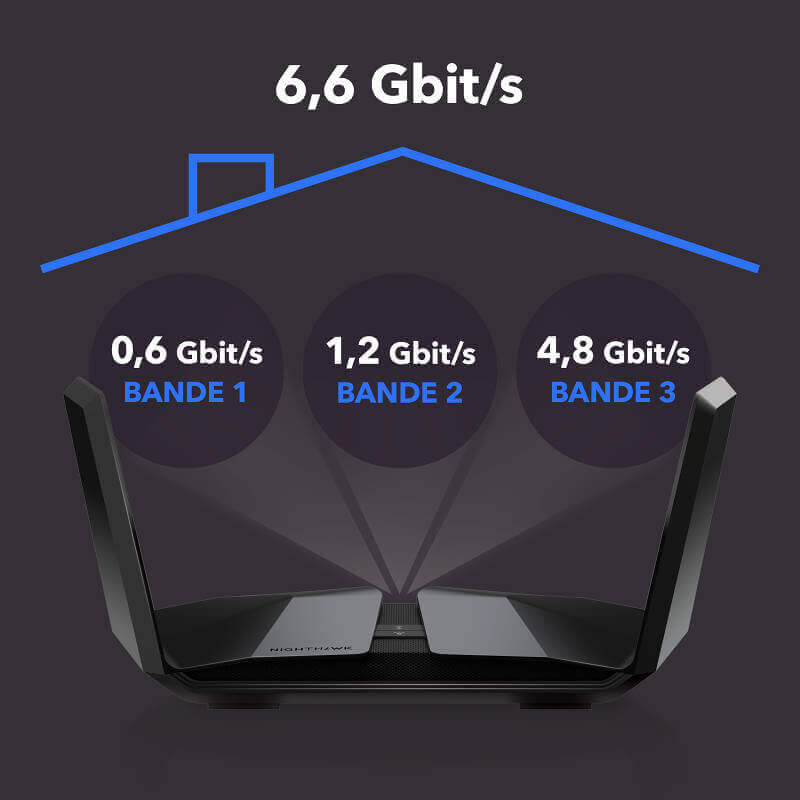 Avec le routeur Netgear Nighthawk AX8 (RAX70) qui utilise la norme Wi-Fi 6, bénéficiez d'un Wi-Fi plus rapide, d'un meilleur débit et appréciez une couverture plus large que ce que peut offrir votre box ou votre routeur Wifi ac . Cette norme permet aussi d'augmenter l'autonomie des appareils connectés en Wi-Fi grâce à une distribution plus efficace de la connexion. Enfin, elle offre la possibilité de connecter plusieurs appareils en même temps : les lags et pertes de vitesse sont de l'histoire ancienne.