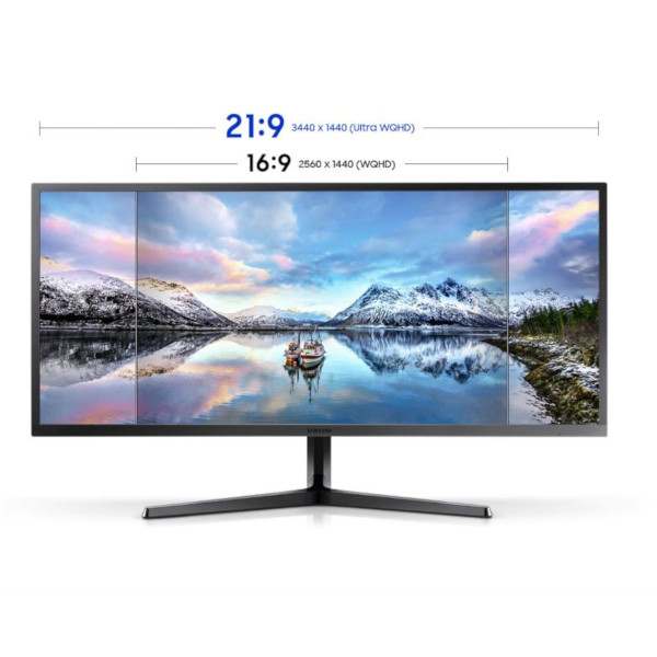 34", VA, 21:9, 3440 x 1440 (UWQHD), 4 ms, 75 Hz, FreeSync, HDMI/DisplayPort