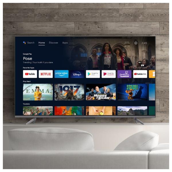 Android TV & TV+ Android 11 Netflix 4K, YouTube 4K, Amazon Prime Video, Disney+ Google Play Store Navigateur Internet Chromecast / T-Cast Google Assistant intégré / Compatible Amazon Alexa |