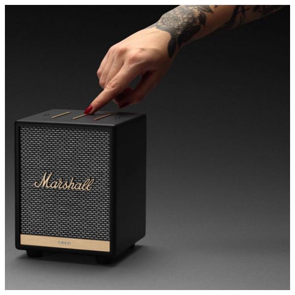 Marshall va même jusque dans les moindres détails en proposant une expérience sonore unique, rassemblant les boutons de volume, de réglages et d'allumage de l'enceinte. Dotée d'une puissance de 30 watts avec son amplificateur de classe D. Marshall Uxbridge Voice est équipé d'un réseau de microphones en champ lointain pour favoriser la reconnaissance vocale intelligente et le contrôle du bruit.