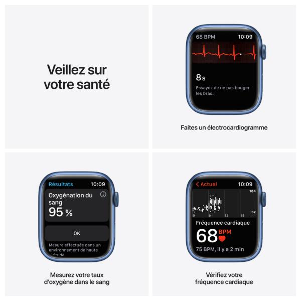 Choisissez parmi des dizaines d’entraînements. Suivez votre activité physique. Profitez de 75 millions de morceaux sur Apple Music pour garder le rythme. Avec l’Apple Watch Series 7, plus rien ne vous arrête. Grâce à son écran plus spacieux, vos données et vos progrès s’affichent avec une clarté inédite, même sous l’eau.
