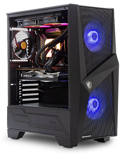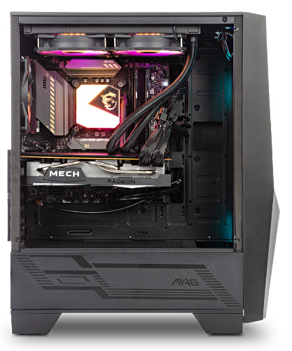 Amis gamer, si vous êtes en train de lire ce texte, c'est que vous avez bon gout. Ou que vous savez repérer les bonnes affaires. Allez, on va dire les deux, car OUI ce PC Blaster est une excellente plateforme gaming, et OUI cette série limitée est une superbe occasion à ne pas manquer ! A l'intérieur, une architecture qui vise la performance en 1080p avec une MSI Radeon RX 6600 XT Mech 2X qui se montre vraiment très à l'aise sur les gros titres du moment. Une carte de toute dernière génération embarquant pas moins de 8 Go de mémoire GDDR6 pour un résultat à l'écran rellement impressionnant. Pour ce PC Blaster, notre Radeon fait équipe avec un processeur que l'on ne présente plus tant sa renommée est grande : le Core i5 10600KF. La génération Intel Comet Lake à son meilleur avec 6 coeurs et jusqu'à 4,80 GHz de fréquence pour ce baroudeur des scènes gaming du monde entier. Ce duo promet une parfaite reactivité du système, tant sur la partie jeux qu'en applicatif, le tout en silence grâce à un refroidissement assuré par un kit watercooling MSI de 240 mm. En parlant de réactivité, les 16 Go de mémoire DDR4 et un stockage 100% mémoire Flash y sont également pour beaucoup. Grâce à eux, le Blaster profite d'un multitâches expéditif ainsi que d'échanges de données ultra rapides via un SSD NVMe de 1 To. Tout ce beau monde prend place dans un boitier MSI Forge 100M aux délicieux accents RGB.