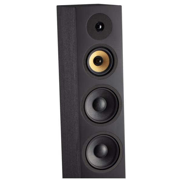 Chaque colonne de la série Krypton repose sur un socle solide qui incline légèrement l’enceinte vers l’arrière. En plus d’un effet esthétique particulièrement réussi, cet angle permet d’aligner les bobines du tweeter et du médium dans l’axe vertical.