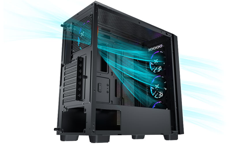 Boîtier PC vitré, Mini ITX / Micro ATX / ATX / E-ATX, 4 ventilateurs 120 mm ARGB fournis