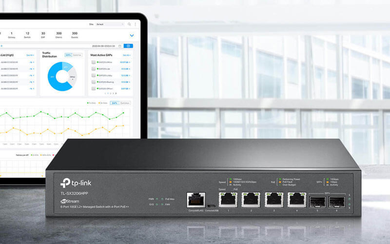 Switch, 4 ports PoE+ 10 Gbps, 2 logements SFP+ 10 Gbps