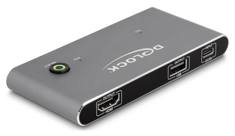 DeLock Commutateur KVM USB-C vers HDMI avec 3 ports USB-A 2.0 - 2 ordinateurs (8K@60Hz)