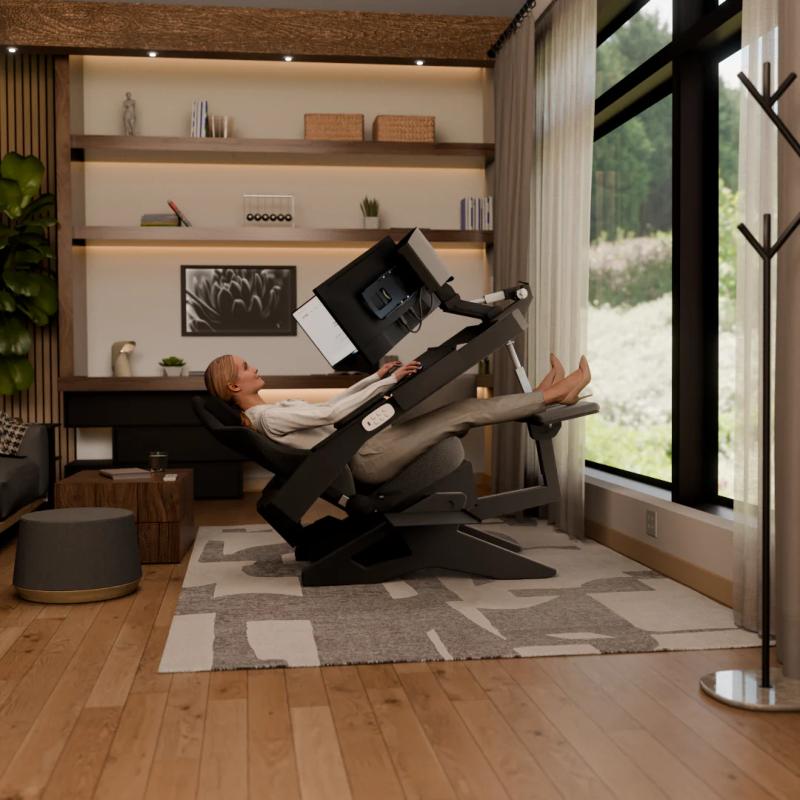 Station ergonomique, Poste de travail évolué avec position zéro gravité et ajustements infinis à commandes et vérins électriques