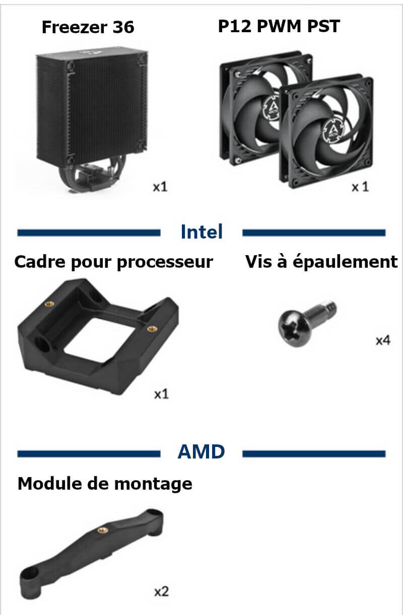 Ventirad double tour, TDP 165 W, Socket Intel et AMD, Version bulk