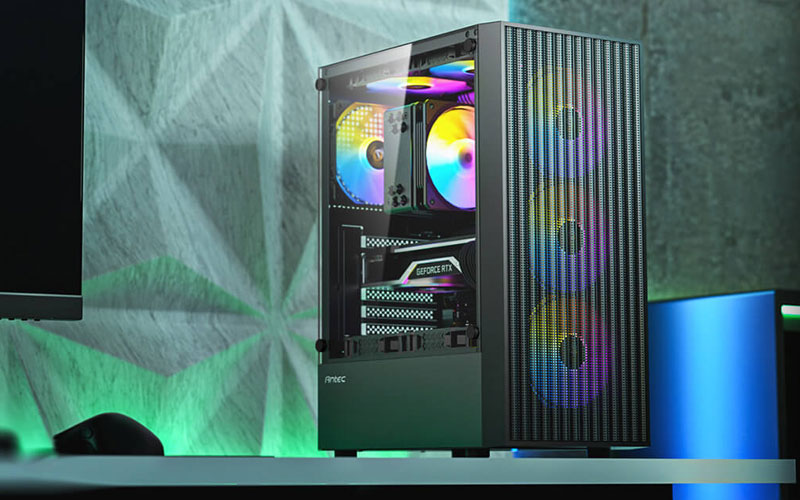 - antec ax27 rgb elite atx boitier pc de gaming avec 4 ventilateurs rvb noir