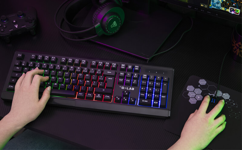 Ensemble clavier/souris/tapis, interrupteurs à membrane, capteur optique 6400 dpi, rétroéclairage, AZERTY, Français