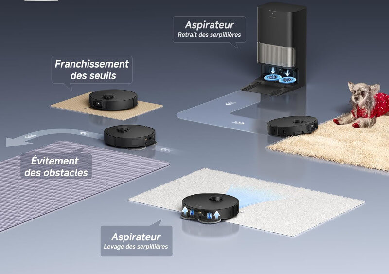 Aspirateur robot, 19 000 Pa, Balayage, Lavage, Alexa/Google Assistant/Siri