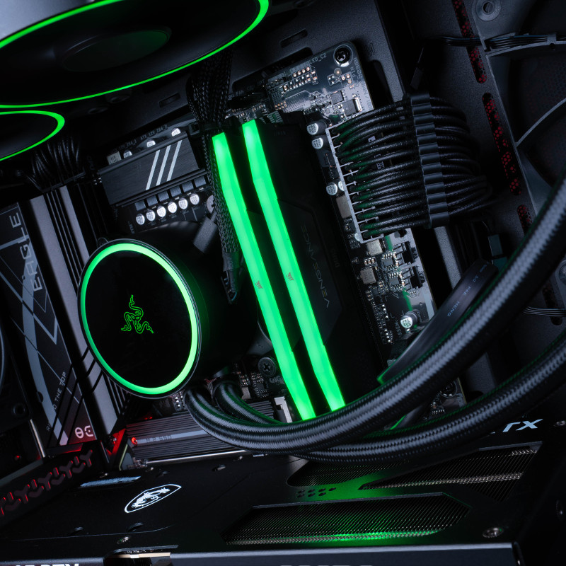 Un duo implacable complété par 32 Go de mémoire DDR5 ainsi que 1 To de mémoire Flash sur un SSD NVMe, le tout bien au frais dans un magnifique boitier Corsair 3500X.