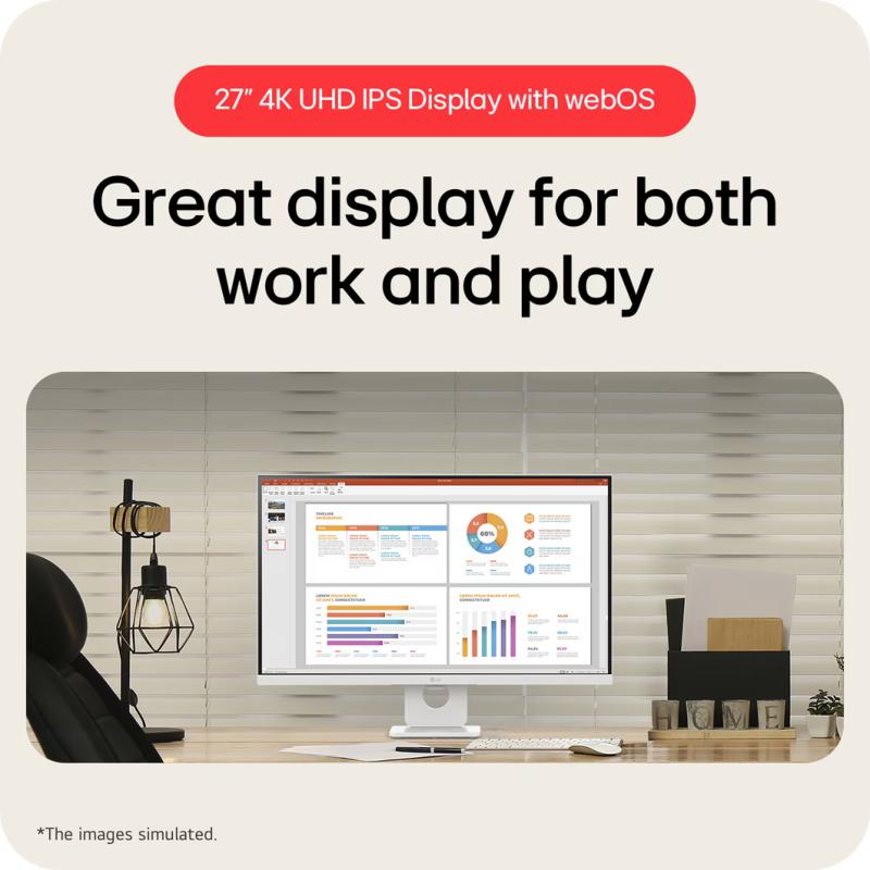 Écran PC 27", IPS, 16:9, 3840 x 2160 (4K UHD), 5 ms, 60 Hz, HDR, WebOS, HDMI/USB-C