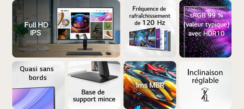 Le LG UltraFine 27U411A-B offre une expérience visuelle à la hauteur des attentes les plus exigeantes. Grâce à son taux de rafraîchissement de 120 Hz et son temps de réponse rapide de 5 ms, il élimine efficacement les flous de mouvement. Les fonctions avancées comme la réduction du flou 1 ms, le Dynamic Action Sync et le Black Stabilizer garantissent des performances fluides et une réactivité optimale dans toutes les situations.