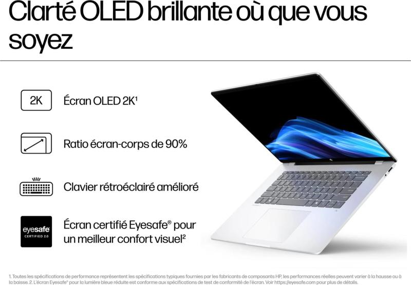 PC portable 16", Qualcomm Snapdragon X Plus X1P-42-100, RAM 32 Go, SSD 512 Go, dalle OLED Full HD+, Windows 11, AZERTY