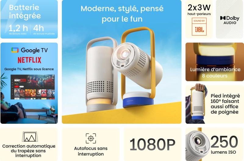 Vidéoprojecteur, 1920 x 1080 (Full HD), Google TV, Wifi, Bluetooth, Batterie
