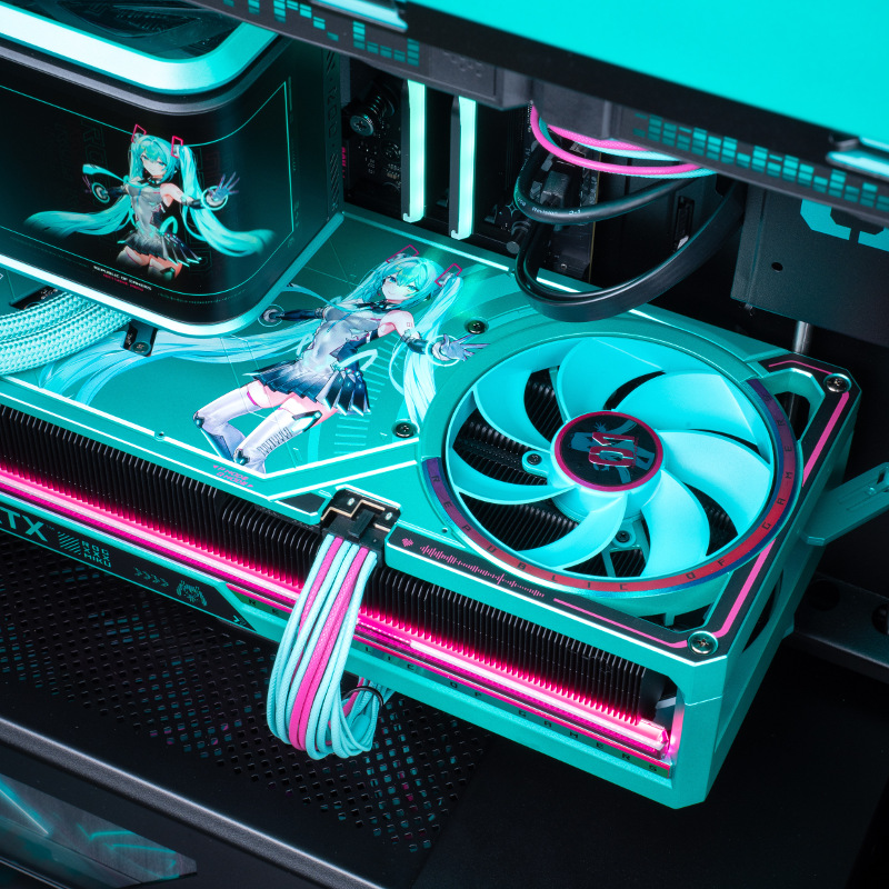 Série spéciale Hatsune Miku, NVIDIA GeForce RTX 5080, AMD Ryzen 7 9800X3D, 32 Go DDR5, SSD NVMe 2 To PCIe 5.0, Win11 version d'essai - Déjà monté et testé