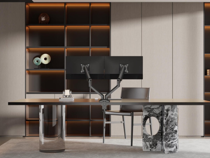 Support double écran, jusqu'à 35"et 12 kg par moniteur, ressort à gaz, gestion des câbles intégrée