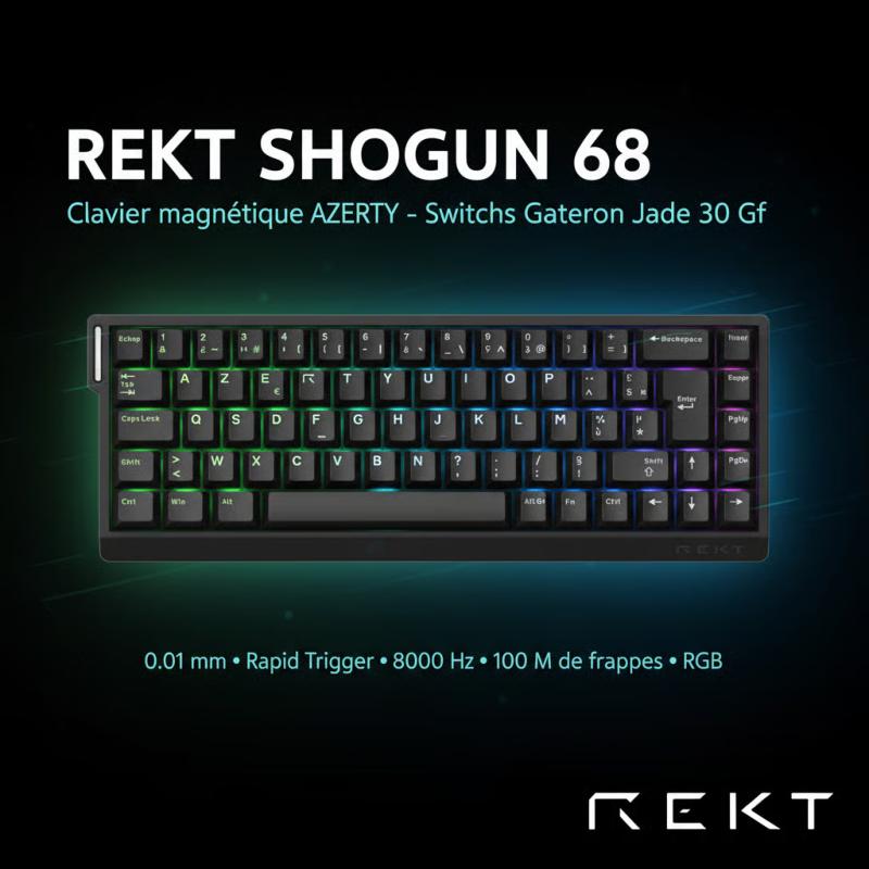Pensé pour les joueurs compétitifs, le clavier gaming REKT Shogun 68 repousse les limites de la performance avec ses switchs magnétiques Gateron Jade customisés, une activation réglable ultra-précise et des technologies exclusives. Compact, rapide et personnalisable, c’est un véritable concentré de puissance dans un format 68 %.