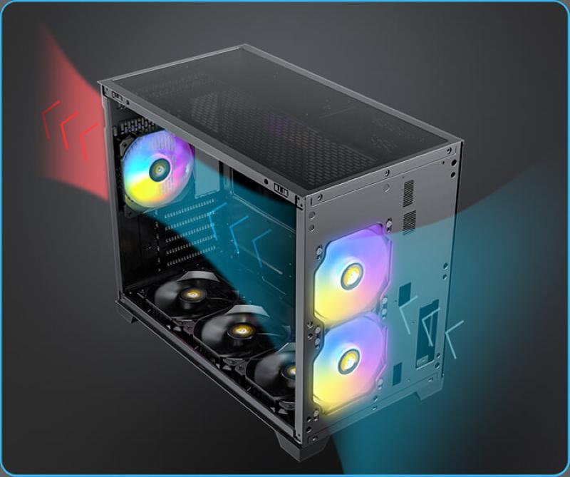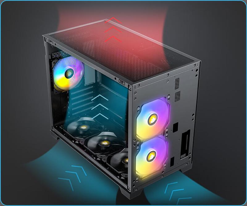 Boîtier PC vitré, Mini ITX / Micro ATX / ATX, 6 ventilateurs 120 mm ARGB dont 3 Reverse fournis
