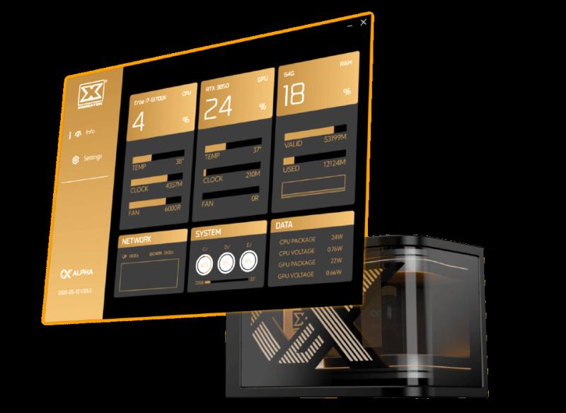 Monté sur un support magnétique, l’écran peut être retiré ou orienté librement pour s’adapter à vos préférences. Grâce au logiciel intelligent intégré, vous pouvez suivre en direct les températures, fréquences ou taux d’utilisation de votre PC, tout en profitant de thèmes personnalisables et ajustements précis de luminosité et d’angle. L’innovation visuelle devient un élément central de votre configuration.