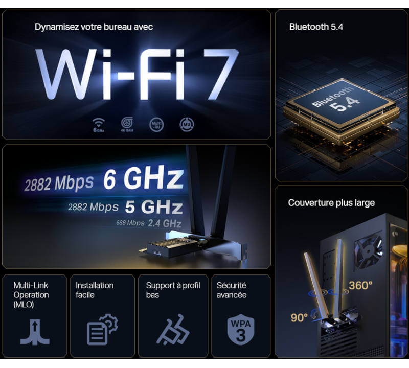 TP-Link Archer TBE400E - Adaptateur PCIe Wi-Fi 7 BE6500 + Bluetooth
