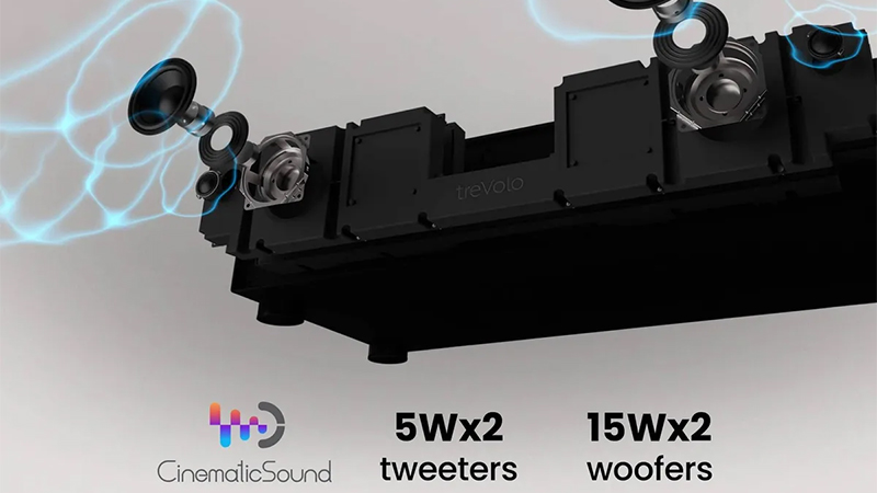 Le système intégré 40 W combine deux tweeters 5 W et deux woofers 15 W pour une scène ample, des graves propres et des aigus détaillés. Le DSP interne affine la réponse pour un rendu home-cinéma immédiatement prêt, idéal si vous n’avez pas encore de barre de son. Ajoutez Android TV, Chromecast intégré, l’accès rapide aux applis (dont Netflix) et la recherche vocale : vos contenus 4K HDR sont à portée de télécommande, sans boîtier externe.