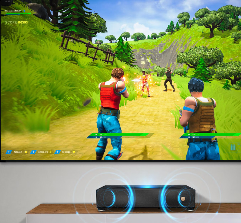 Jouez avec une fluidité remarquable : le V5010i détecte l’ALLM des consoles et optimise la latence : 17,9 ms en 4K60, 13 ms en 1080p120 et jusqu’à 5,1 ms en 1080p240. Trois HDMI (2.0b/HDCP 2.2 + une entrée 2.1 downscalée en 1080p120) assurent la compatibilité de vos sources, tandis que le eARC transmet un flux Dolby Atmos / 7.1 vers votre ampli en pleine résolution. Sont également présents S/PDIF multicanal, USB-A (alimentation/lecture/service), RS232 et trigger 12 V pour une intégration facile.