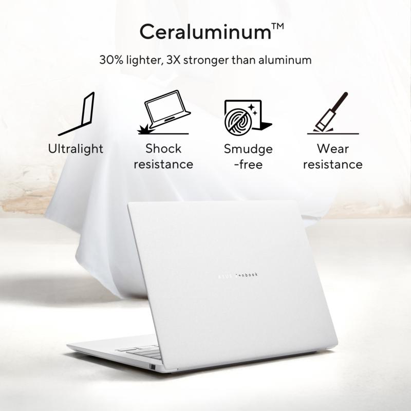 Fabriqué en métal avec un couvercle en Ceraluminum high-tech, le Zenbook S 14 associe élégance et robustesse dans un format particulièrement fin et léger. Son processus de moulage intégré et d’usinage CNC assure une finition soignée et durable, pensée pour accompagner vos déplacements quotidiens avec style.
