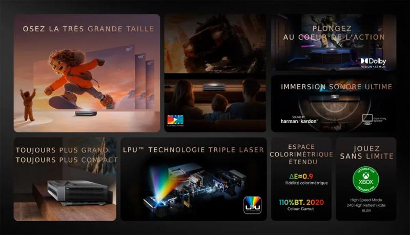 Vidéoprojecteur 4K, Ultra courte focale, 3840 x 2160 (UHD), Wifi, Dolby Vision, Dolby Atmos, Smart TV