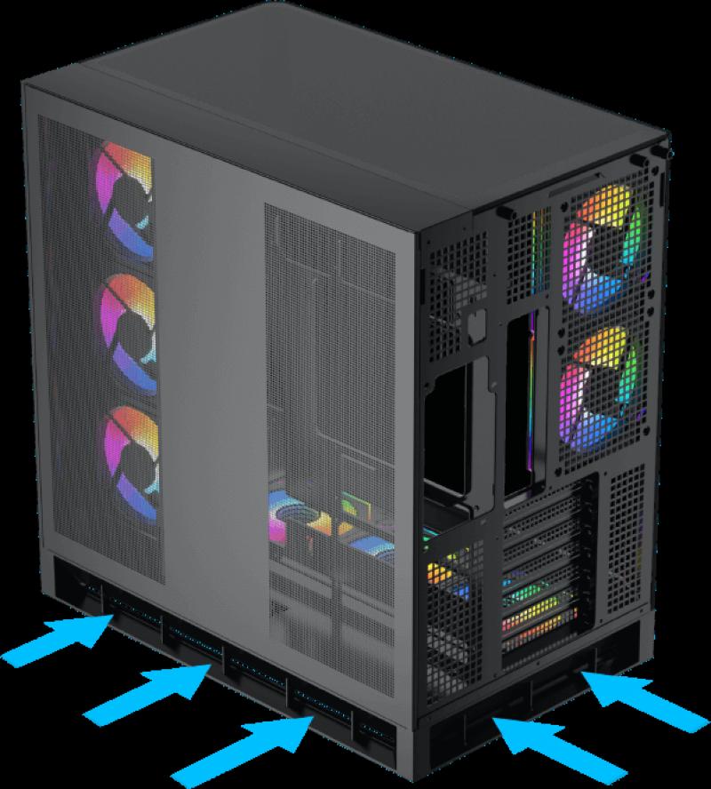 Grâce à la possibilité d’installer la carte graphique à la verticale, votre GPU devient la star du show. Chaque détail visuel est maîtrisé, pour une immersion totale dans votre univers gaming. Laissez parler votre créativité et construisez un setup aussi performant que spectaculaire.