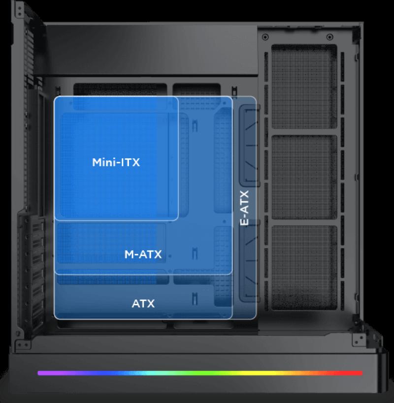 Le boîtier Xigmatek Pano II accueille sans effort des composants de grande taille. Il prend en charge les cartes mères jusqu’au format E-ATX (285 mm) ainsi que les cartes graphiques jusqu’à 400 mm de longueur. Le tout avec un espace bien agencé pour une installation confortable et propre, même avec un câblage complexe.