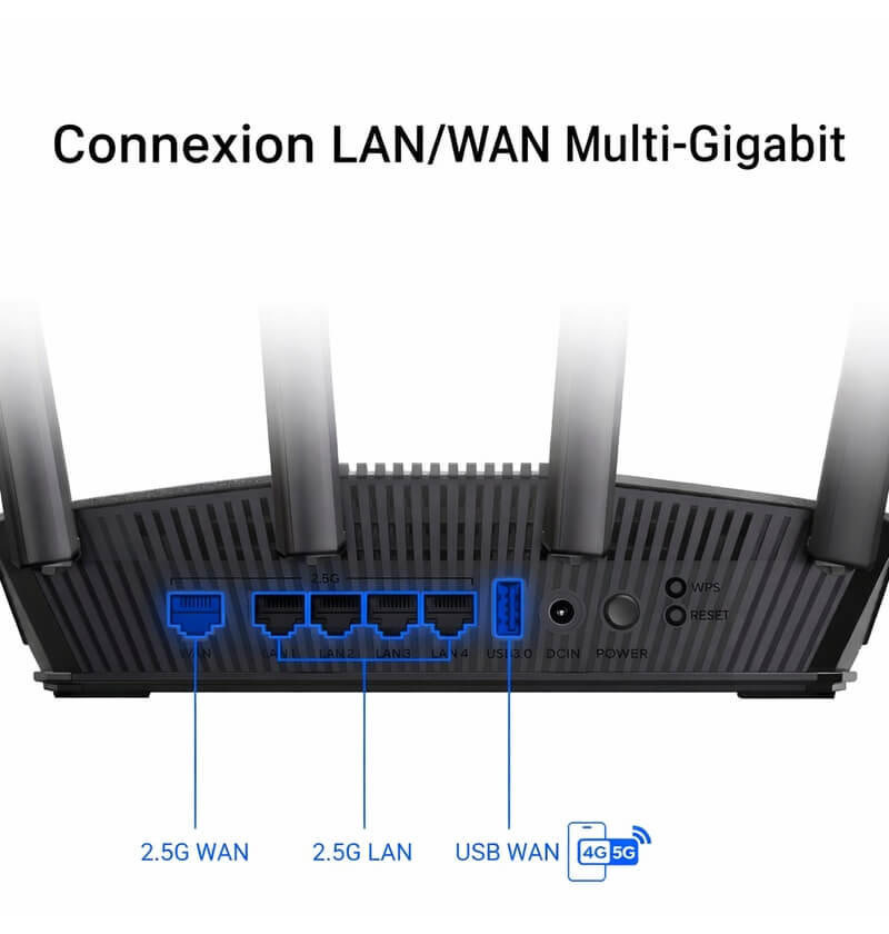 Routeur sans fil Wi-Fi 7, jusqu'à 6 500 Mbps (5 764+ 688), 2 bandes (dual-band)