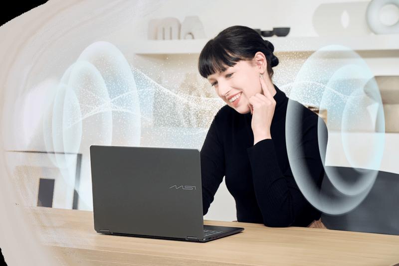 Côté son, l'expérience est tout aussi haut de gamme : quatre haut-parleurs (2 x 2 W + 2 woofers), audio certifié Hi-Res, traitement DTS, réseau de 3 micros spatiaux et technologie AI Noise Cancellation Pro pour des visioconférences claires et sans parasites. Un environnement audio parfaitement maîtrisé pour des échanges professionnels nets.