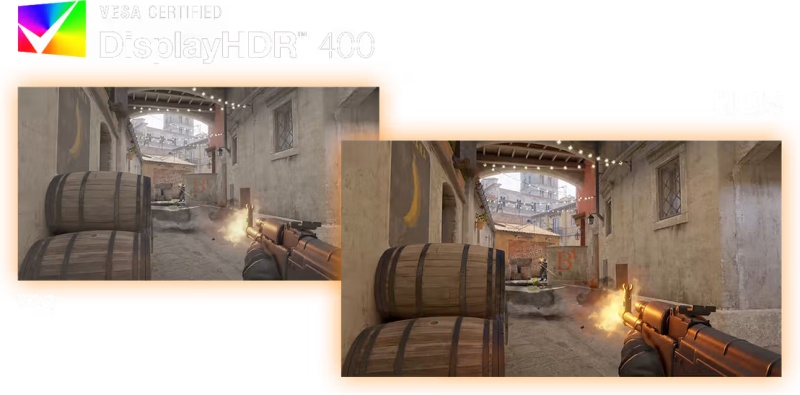 La technologie HDR apporte une touche de profondeur et de clarté, pour vous immerger totalement dans l'univers du jeu. Que vous arpentiez des cartes compétitives ou exploriez de vastes environnements, chaque détail est restitué avec intensité et fidélité.