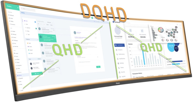 Ecran PC 44.5" LED 5K, 5120 x 1440 pixels, 2 ms (gris à gris), Format large 32/9, Dalle VA incurvée, HDR, 75 Hz, Adaptive-Sync, HDMI/DisplayPort, Réglage en hauteur, Noir