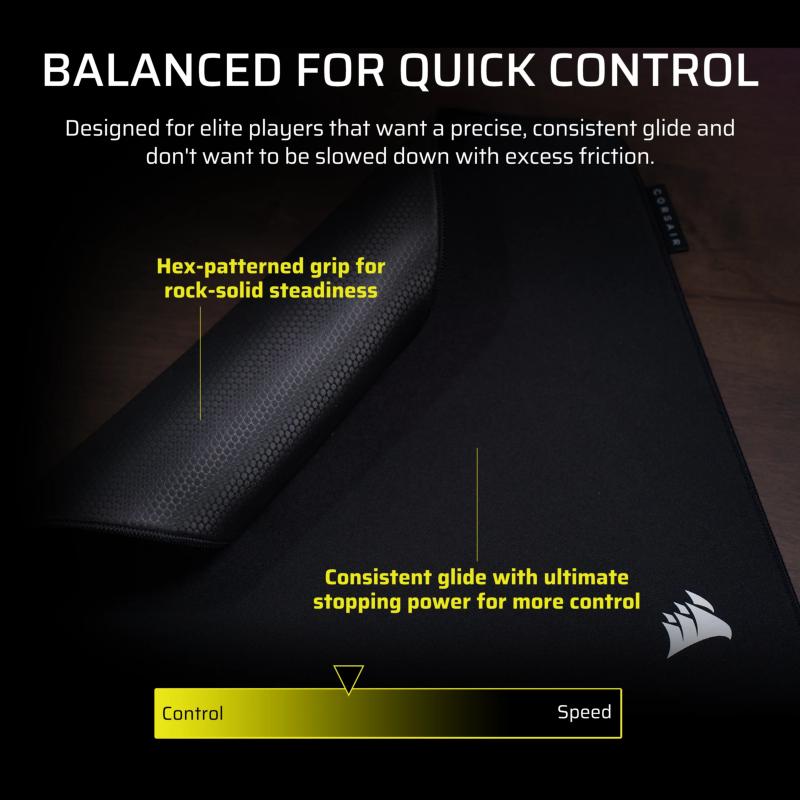 Avec sa surface en tissu spécialement conçue pour le contrôle, le tapis de souris Corsair MM Pro Control Large offre une précision chirurgicale adaptée aux exigences des compétitions esport. Chaque mouvement est maîtrisé, chaque visée devient plus fluide, pour une expérience de jeu plus constante et performante. Le tapis permet à votre capteur de souris de fonctionner à son plein potentiel, quelle que soit votre vitesse.