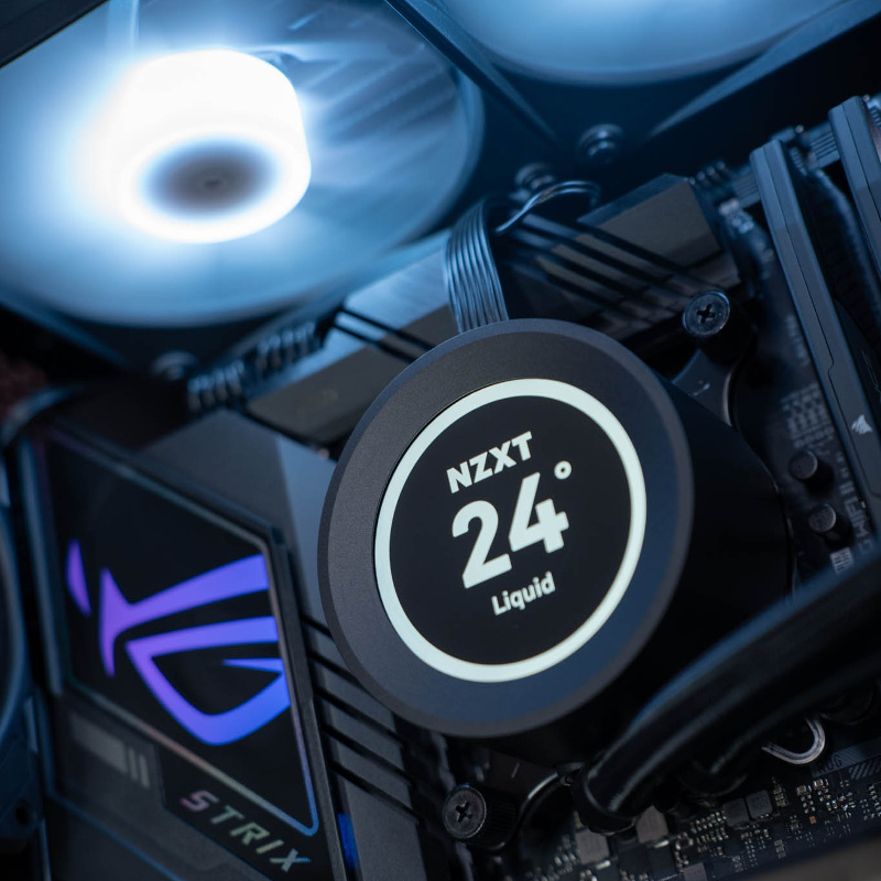 Refroidissement CPU et alimentation profitent également des dernières avancées technologiques, avec d'un coté un kit Watercooling 360 mm NZXT Kraken, et de l'autre un bloc de 1250 Watts ATX 3.0.